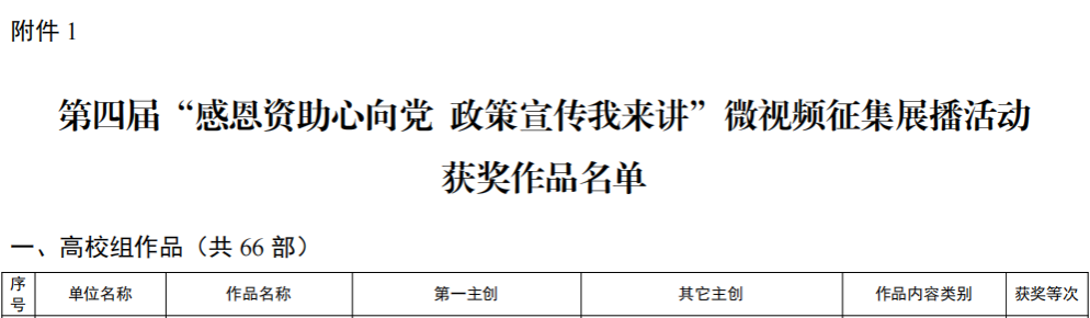 为选树资助育人亮点、讲好资助故事、丰富宣传形式,充分展示学生资助工作成效,省教育厅于今年5-7月面向省内各级各类学校在校学生、学生资助工作者以及各级教育主管部门学生资助工作者征集学生资助宣传微视频作品。全省各地各校共遴选推荐314部作品,经专家评审并在省委教育工委、教育厅官网公示,最终确定高校组和市(州)组优秀组织奖共39个,获奖作品共93部,其中:一等奖7部、二等奖16部、三等奖24部、优秀奖46部。