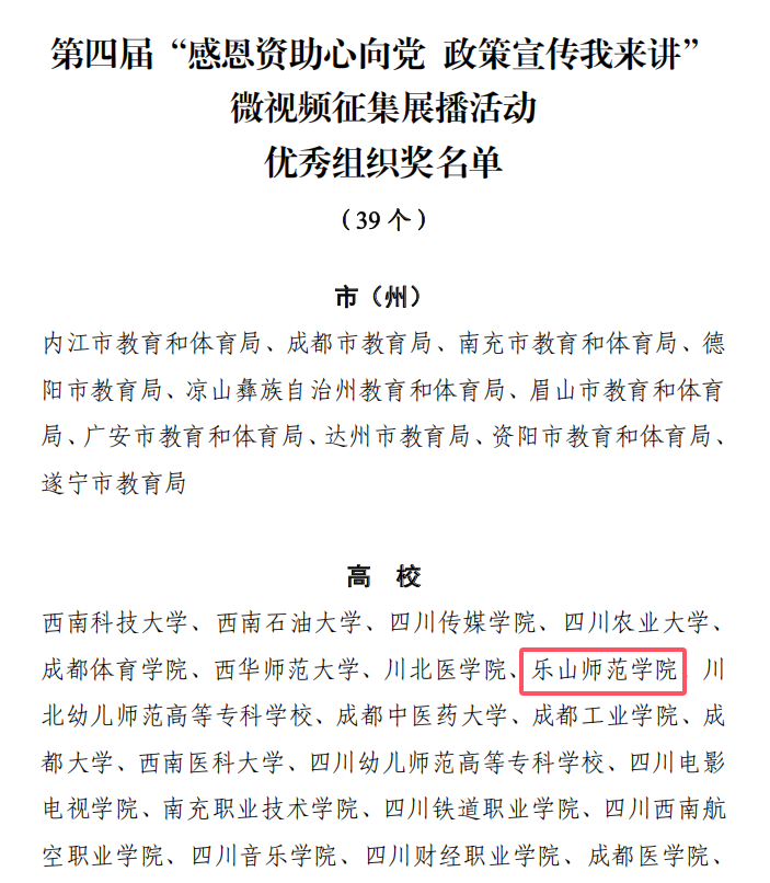 本网讯(文、图/潘红)近日,四川省教育厅公布第四届“感恩资助心向党 政策宣传我来讲”微视频征集活动获奖名单。BEAT365荣获“优秀组织奖”,报送的三个作品获高校组二等奖1项、三等奖1项、优秀奖1项。